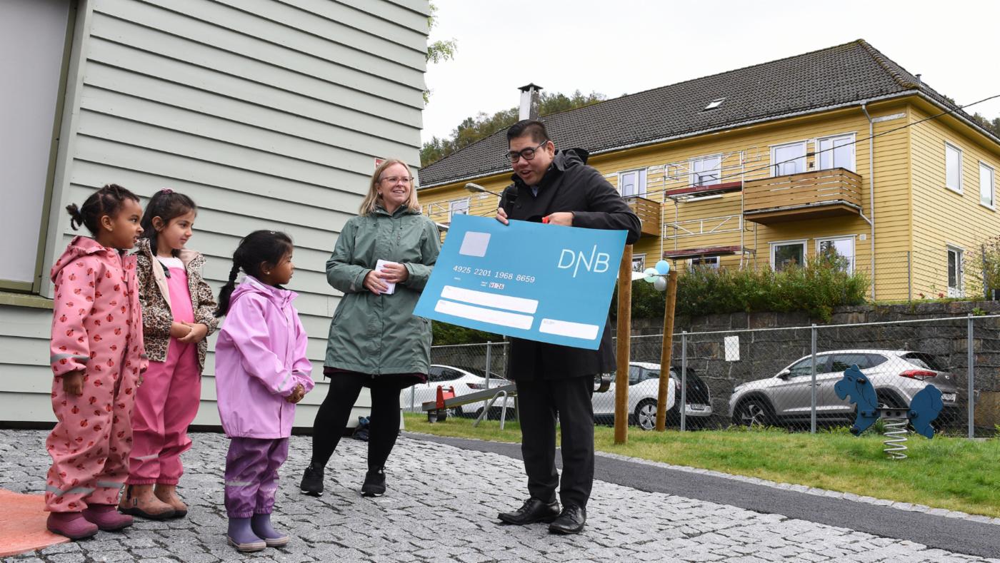Det regner lett denne septemberfredagen, men det legger ikke noen demper på stemningen. Utenfor barnehagen er det nye, flotte uteområdet pyntet med ballonger og vimpler.