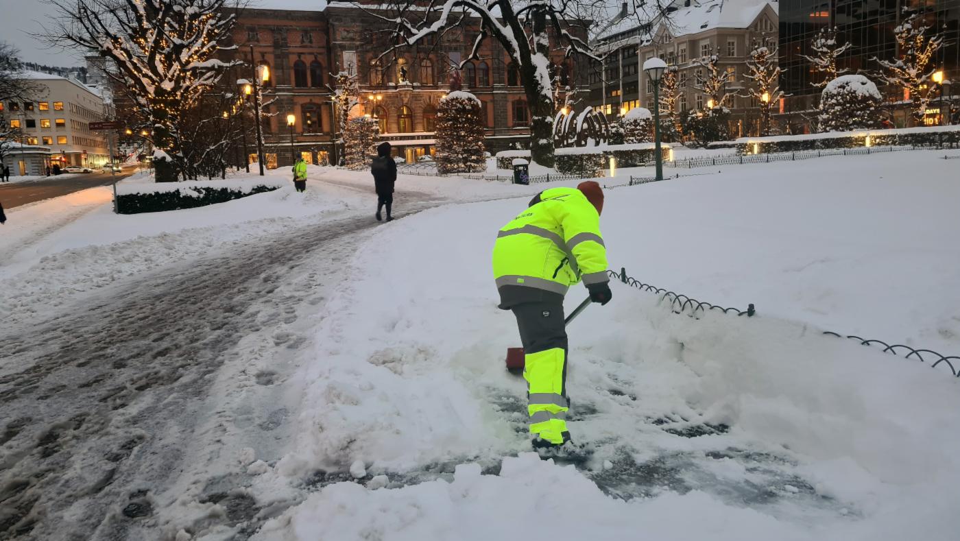 FINN SLUKEN: Bymiljøetaten har hatt alt tilgjengelig mannskap, 70 enheter, ute siden tirsdag. Utfordringen nå er å finne og grave frem alle slukene før regnet kommer.