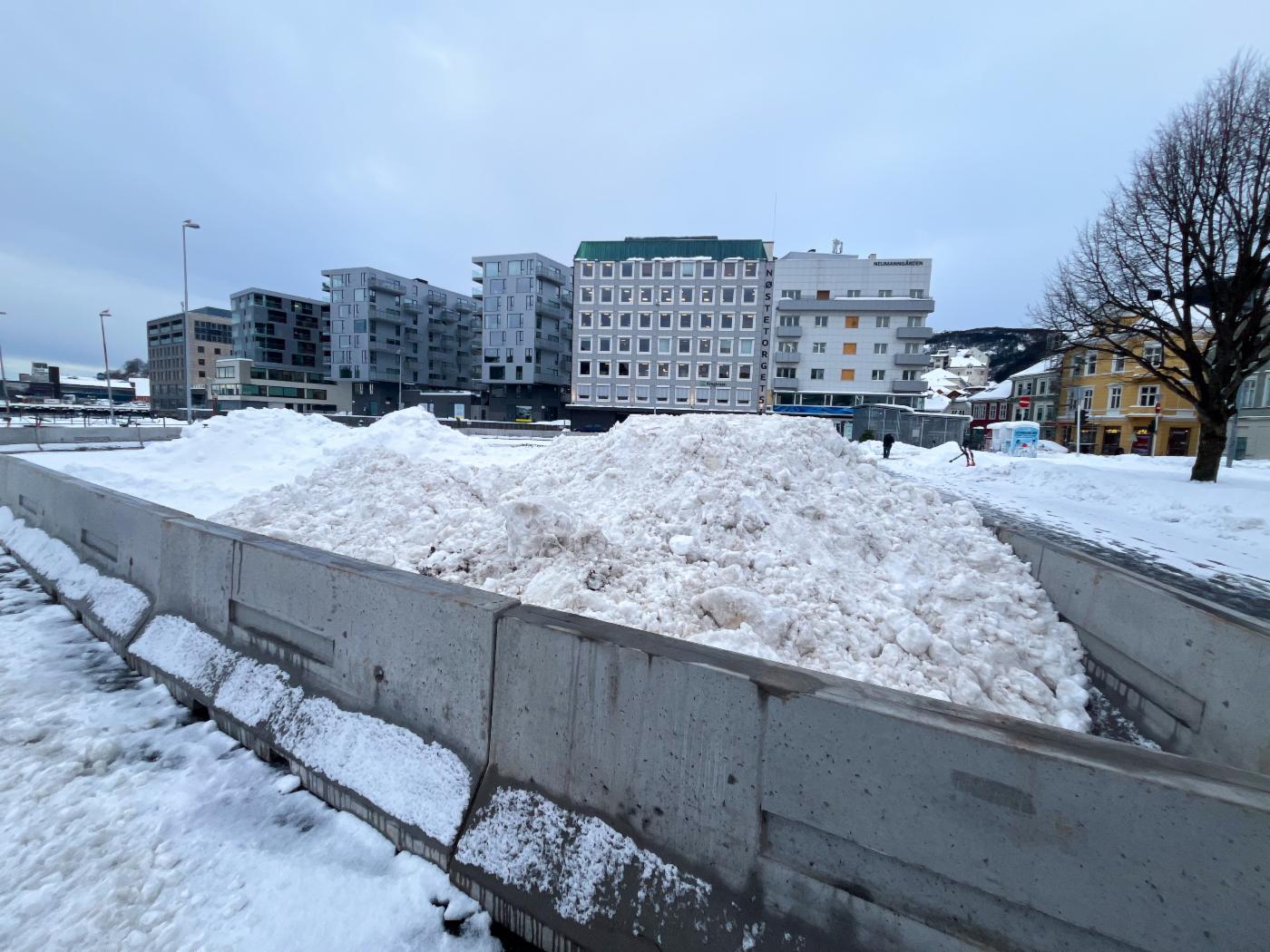 Bymiljøetaten har etablert en midlertidig lagringsplass for snø fra Bergen sentrum på Sukkerhusbryggen denne vintersesongen. Snømottaket vil fra januar til 1. mai derfor beslaglegge deler av området på bryggen.