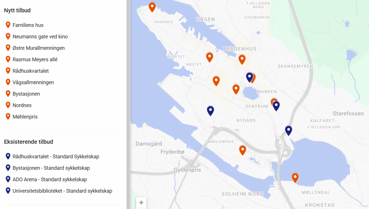 Fra før av finnes det rundt 40 sykkelparkeringsplasser i Bergen og i nabokommuner. De 20 nye plassene er spesielt tilpasset større familietilpassede sykler, det vil si lastesykler slik som longtails og kassesykler.