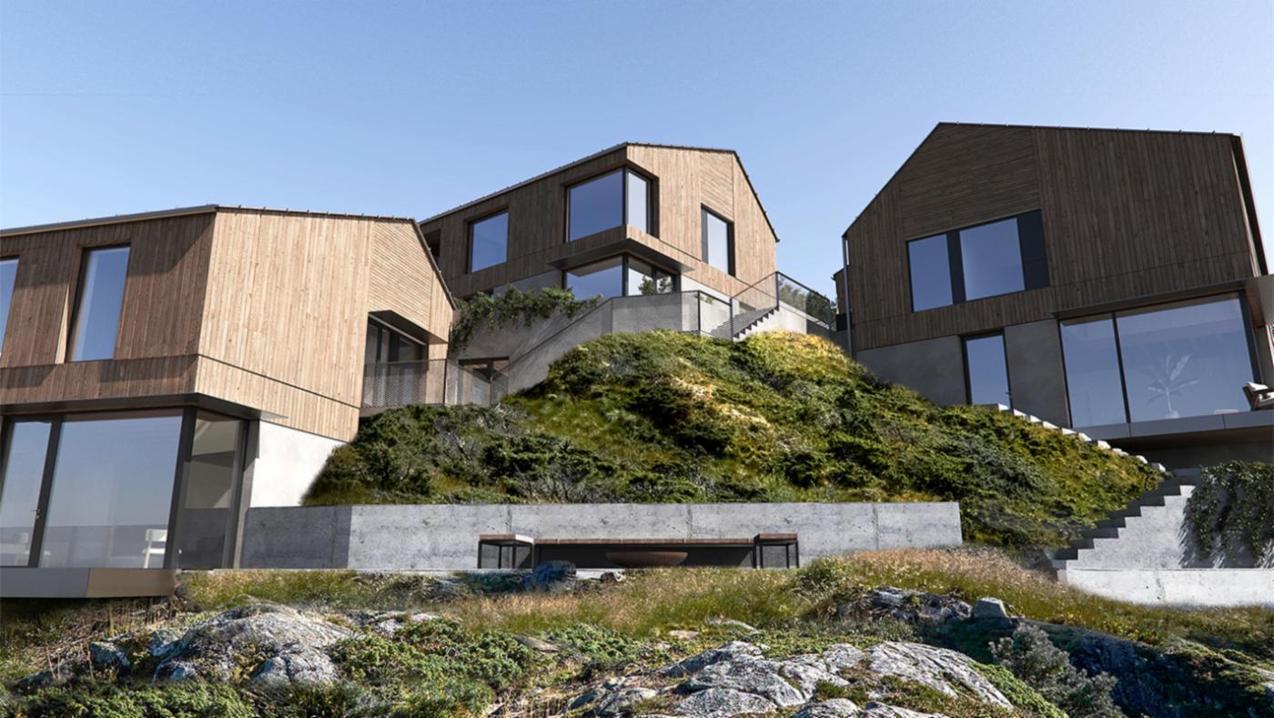 Under bildet kan du laste ned PDf med flere bilder av rekkehusene