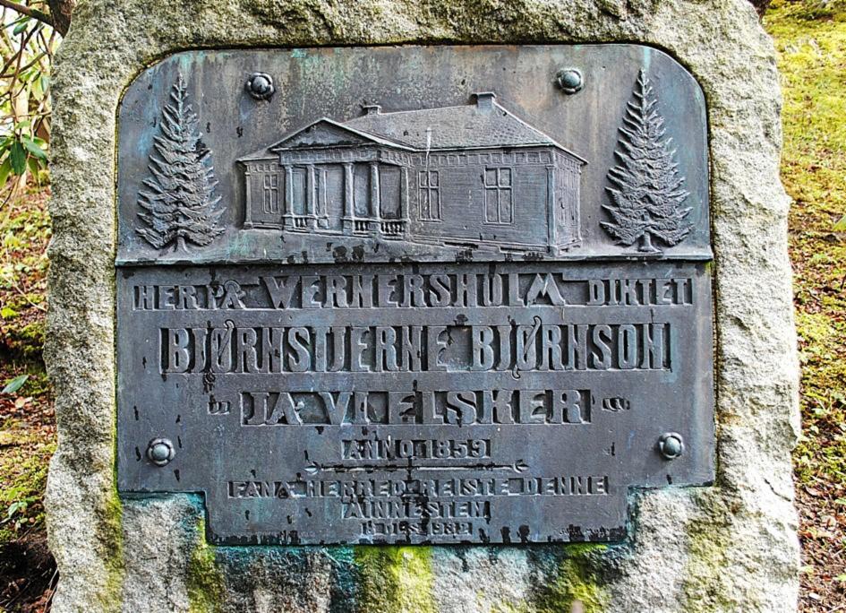 Bjørnson skrev teksten til den norske fedrelandssangen i 1859. Teksten kom til under et besøk hos en venn på lystgården Wernersholm på Hop. Langs en smal bilvei ved eiendommen står en bautastein med en minneplakett om den historiske dikthendelsen.