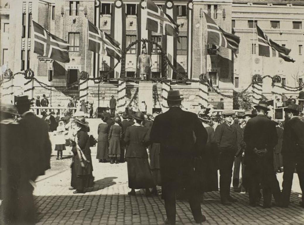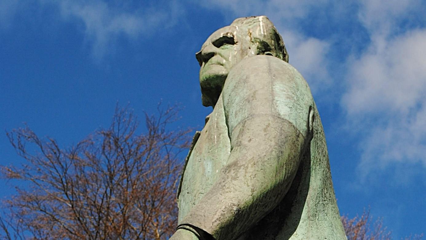 På en plass utenfor Den Nationale Scene (DNS) ruver en mann i bronse på en kraftig sokkel. Langt der oppe går han med bestemte skritt raskt fremover, korrekt kledd i dress og frakk. En gang i tiden var dette en av landets mest kjente menn. Har han gått litt i glemmeboken, mon tro?