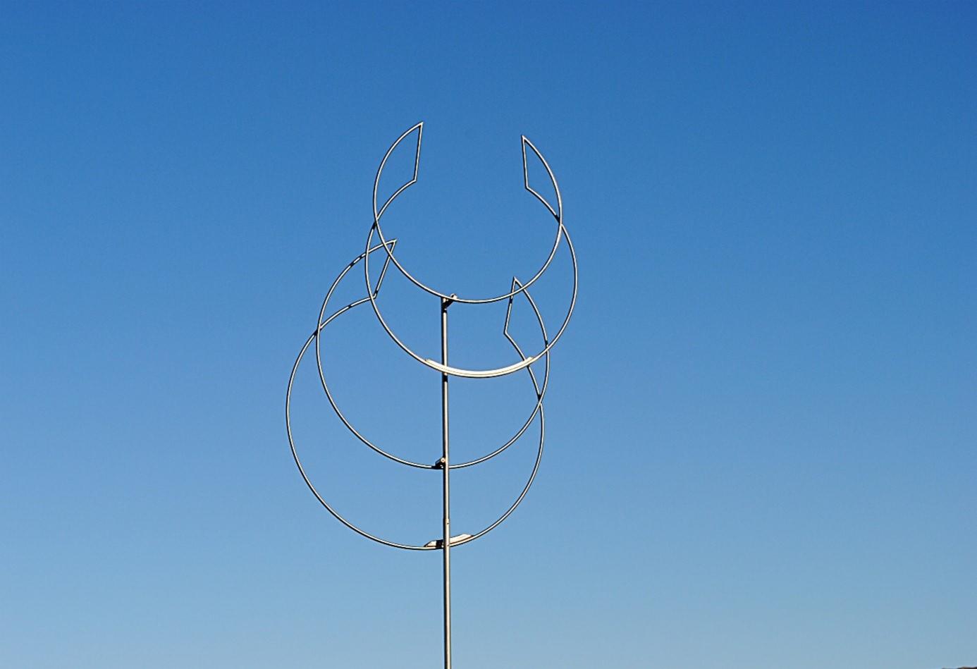 Den nye skolen er fylt med kunst både inne og i uterommene. I en av skolens hager står en høy metallstang med brutte sirkler montert øverst. Reinhard Haverkamp (1954- ) er kunstneren bak den slanke skulpturen. Han er særlig interessert i kinetisk kunst, kunst som beveger seg.