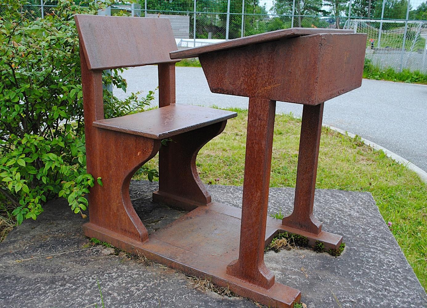 Breivik har skapt et møbel som kan sittes på, men den er nok litt for stor for mange av elevene. Skulpturen ble gitt i gave til skolen for å feire at det i 1995 hadde vært skole på Søreide i 150 år.