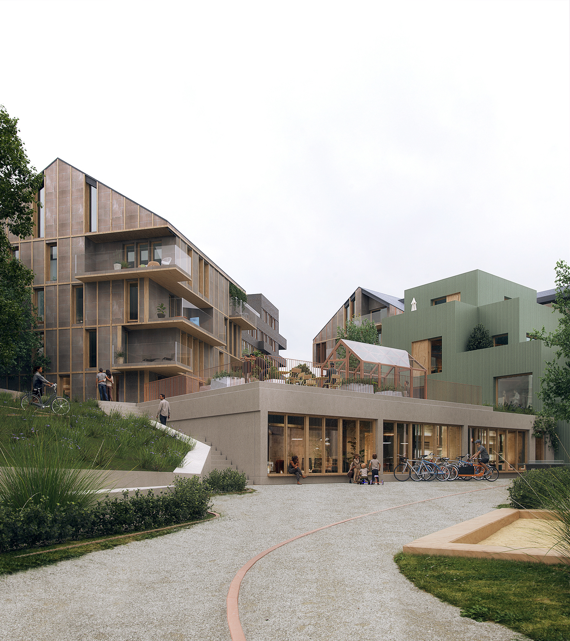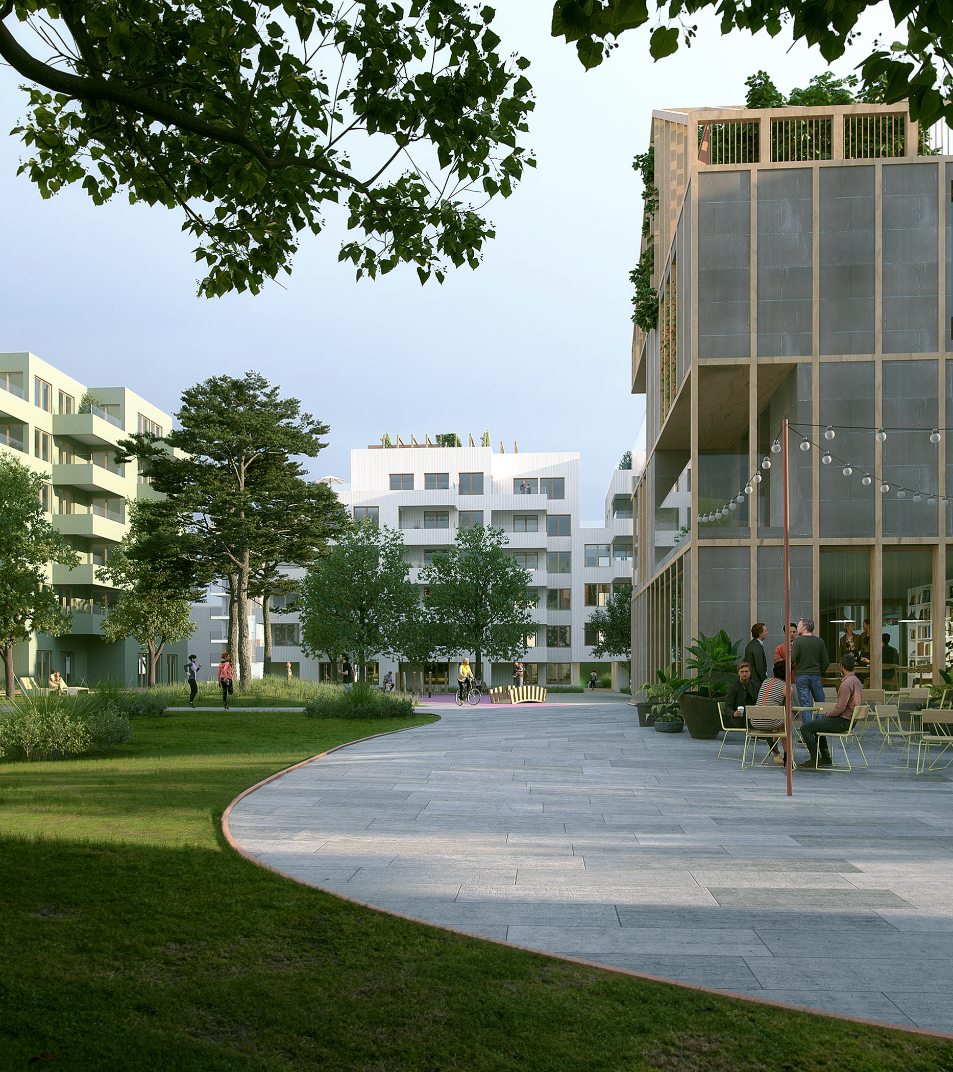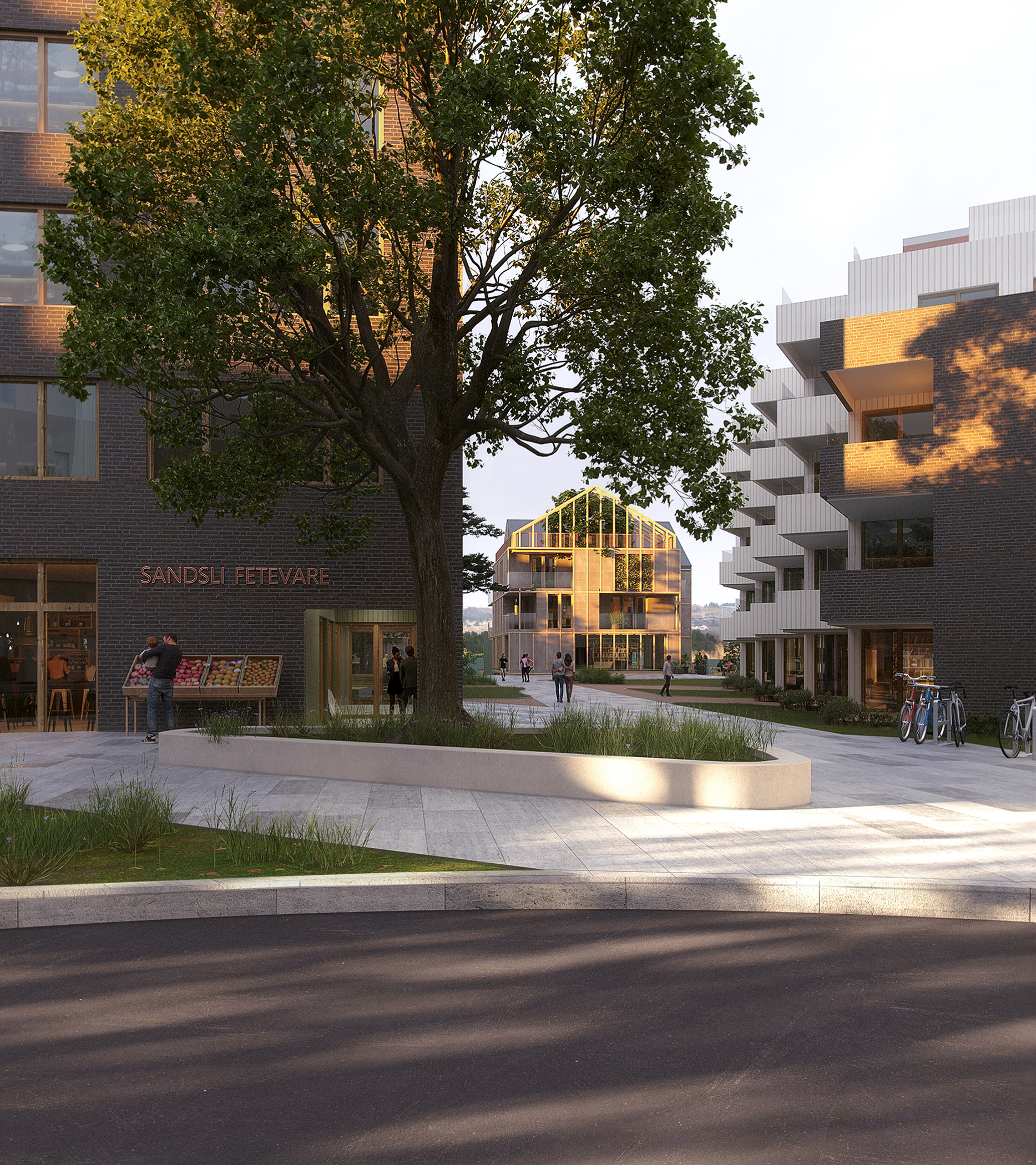 Intensjonen med planforslaget er å rive eksisterende kontorbebyggelse og føre opp inntil 207 boenheter. Planforslaget legger opp til å bygge på allerede utsprengte grå flater. Hovedgrepet i planforslaget er en tredeling av foreslått bebyggelse, med ulik utnyttelsesgrad, høyde og formgiving. Planforslaget legger opp til en plassering av boligblokker langs Sandsliåsen, med mer oppløst småskalabebyggelse mot øst.