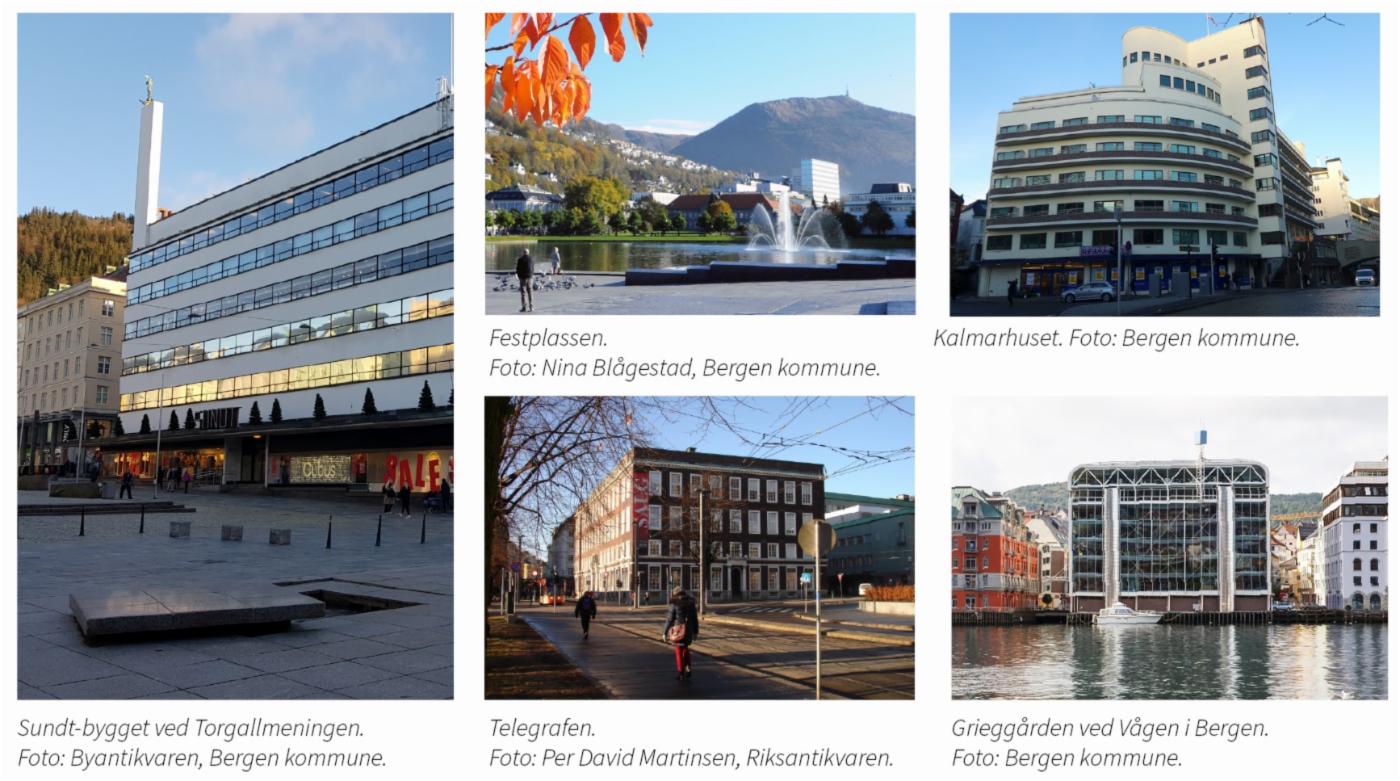 I Bergen er historien tilstedeværende i form av arkitektur fra alle historiske epoker, som skaper et unikt bygningsmiljø som er både tett og mangfoldig. Bergen er en utpreget urban by, og den selvgrodde bystrukturen fra middelalderen er fortsatt med å definere byens form. I den kompakte byveven kan ulike tiders arkitektoniske stilretninger og byplantradisjoner leses tydelig i bylandskapet, et bylandskap der også bybranner og visjonære byplangrep, enkeltstående arkitekturverk og særbergenske byrom har satt tydelige spor.