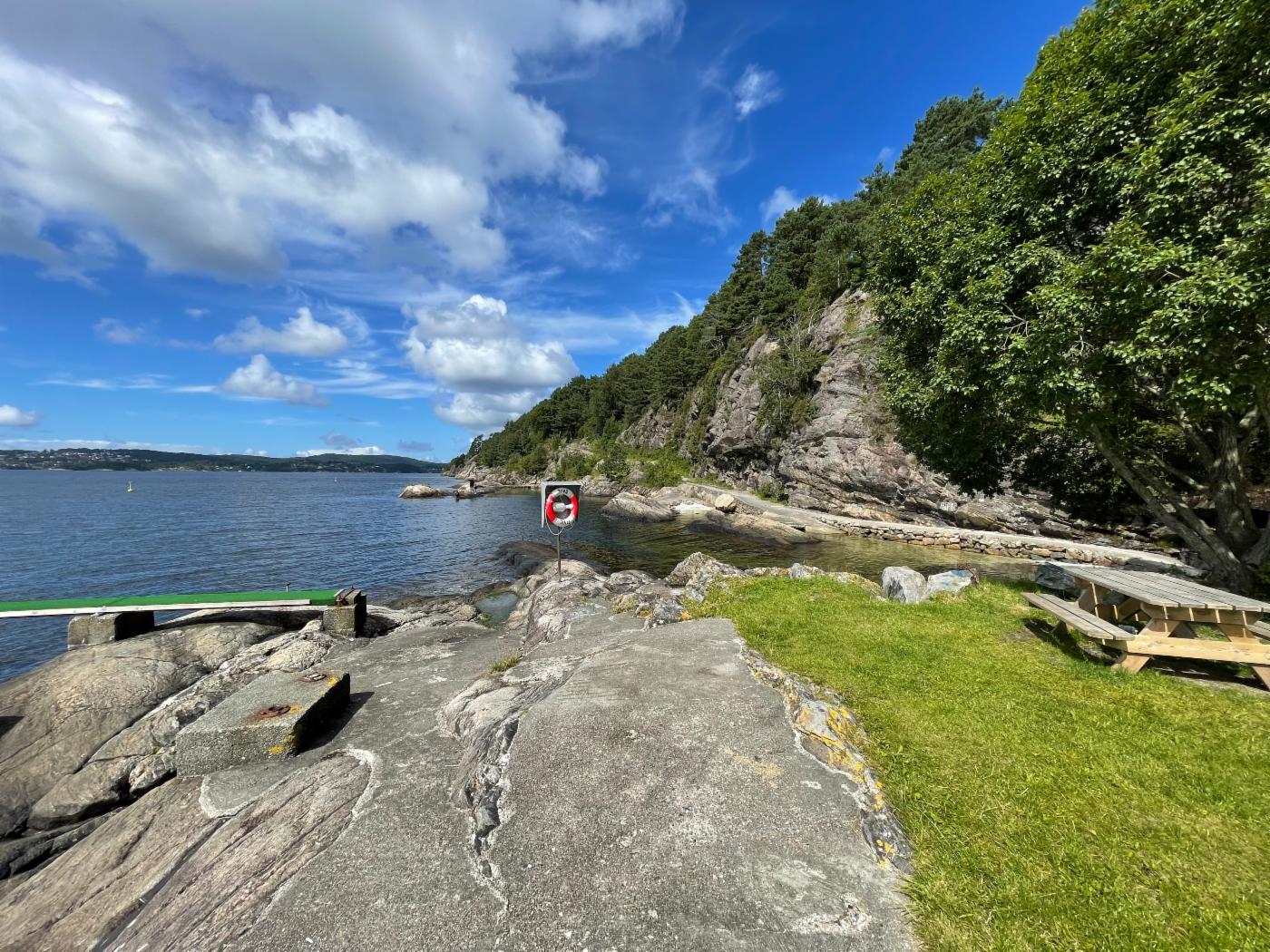 Badeplassen har bord og benker, toalett, bosspann og offentlig ettersyn. Badeplassene blir overvåket fra mai til august/september for å sikre god badevannskvalitet.