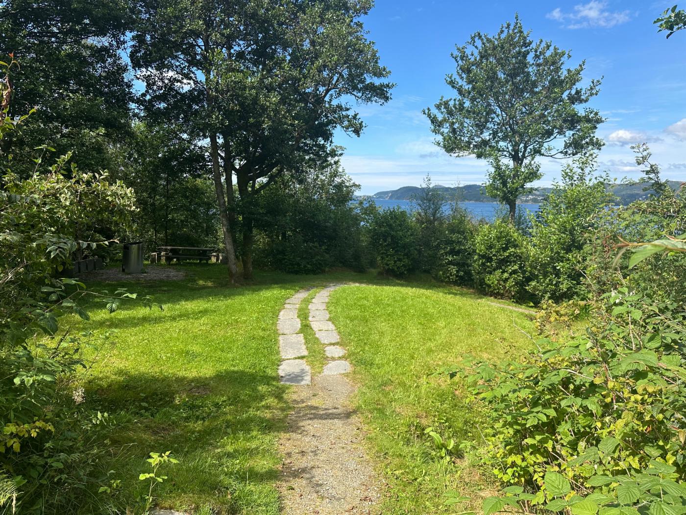 En liten, koselig badeplass i Morvik, med sandfjære, grillplass og benker.
