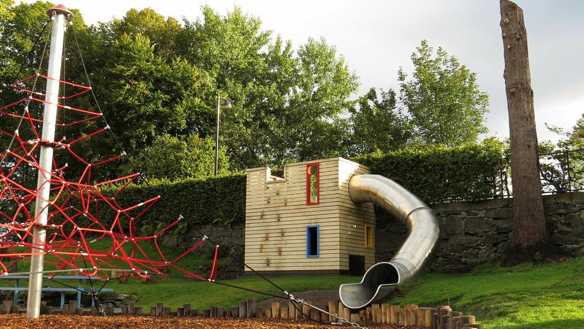 - aktivitetsslette med lekehytte, trampoline og klatrestativ
