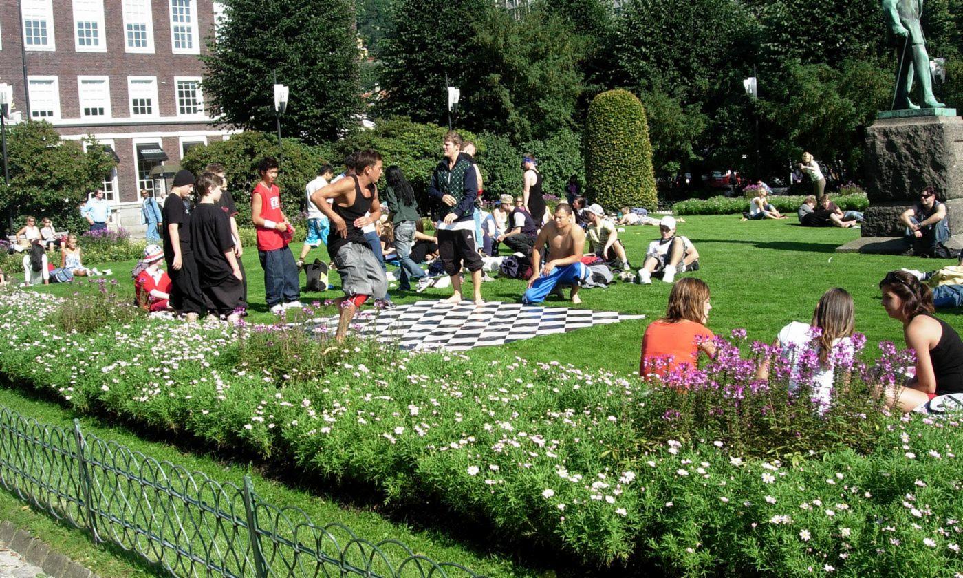 Sør-vest for Festplassen er også et tradisjonelt parkanlegg med en noe lavere puls enn i andre deler av aksen. Her kan sitte stille på en benk og betrakte den gullforgylte «Fiskeren» eller den misfornøyde «grinegutten». Om man først er på kunstreise bør en også la seg inspirere av den mindre entydige skulpturen «Rød vind» eller nyte synet av den formfullendte «dansk pige» .