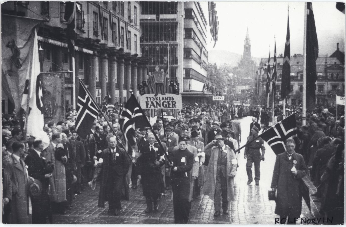 I togene marsjerte soldater og militære fra fem allierte nasjoner, Bjørn West og hjemmestyrkene, politikstyrkene, brannvesenet, Det Sivile Luftsvern, Danskehjelpen og Barnehjelpen, og ikke minst - fanger fra Ulven, Espeland, Falstad, Grini og Tyskland samt veteranene fra 1905.