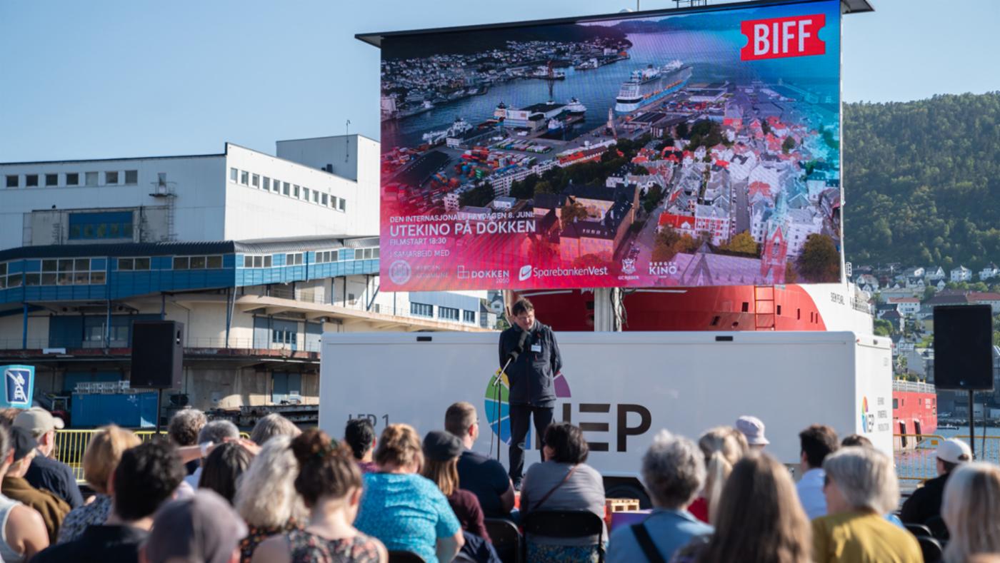 Det var Bergen Internasjonale Filmfestival (BIFF) og Bergen kommune ved Dokken 2050 som inviterte til gratis utekino på Den internasjonale havdagen 2023.