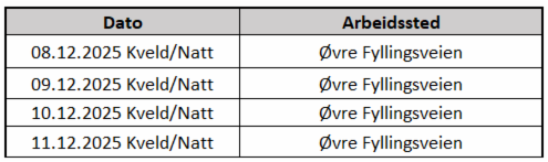 I uke 50 skal det fornyes følgende steder: