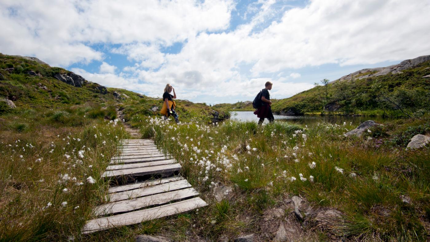 Jeg liker best å gå opp bak Stemmemyren og ta den bratte, steinete bakken fra Øyjordsveien til Garpetjernet; vi har døpt den "Klatremusbakken". Følg turveien til demningen i Munkebotn der det er skiltet inn til venstre. Her følger du stien oppover. Du passerer de gamle vannrennene som Sandviksguttene og Dræggehyttens venner har restaurert – før du fortsetter opp til Sandvikshytten og første sjokoladepause. Utsikt, stillhet, frisk luft.