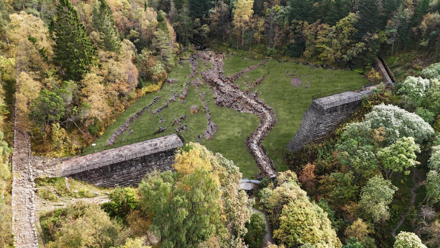 Rivearbeidet vil bli utført forsiktig, med mål om å gjenbruke steinen fra dammen. Steinene fra dammen skal brukes til å lage en erosjonssikret kanal gjennom det gamle magasinet. Turveien i området er i svært dårlig stand, og denne vil bli rustet opp i forbindelse med nedleggelse av dammen. Naturstein fra dagens konstruksjon demningen vil bli brukt som trinn i den nye turvei/eseltrapp.