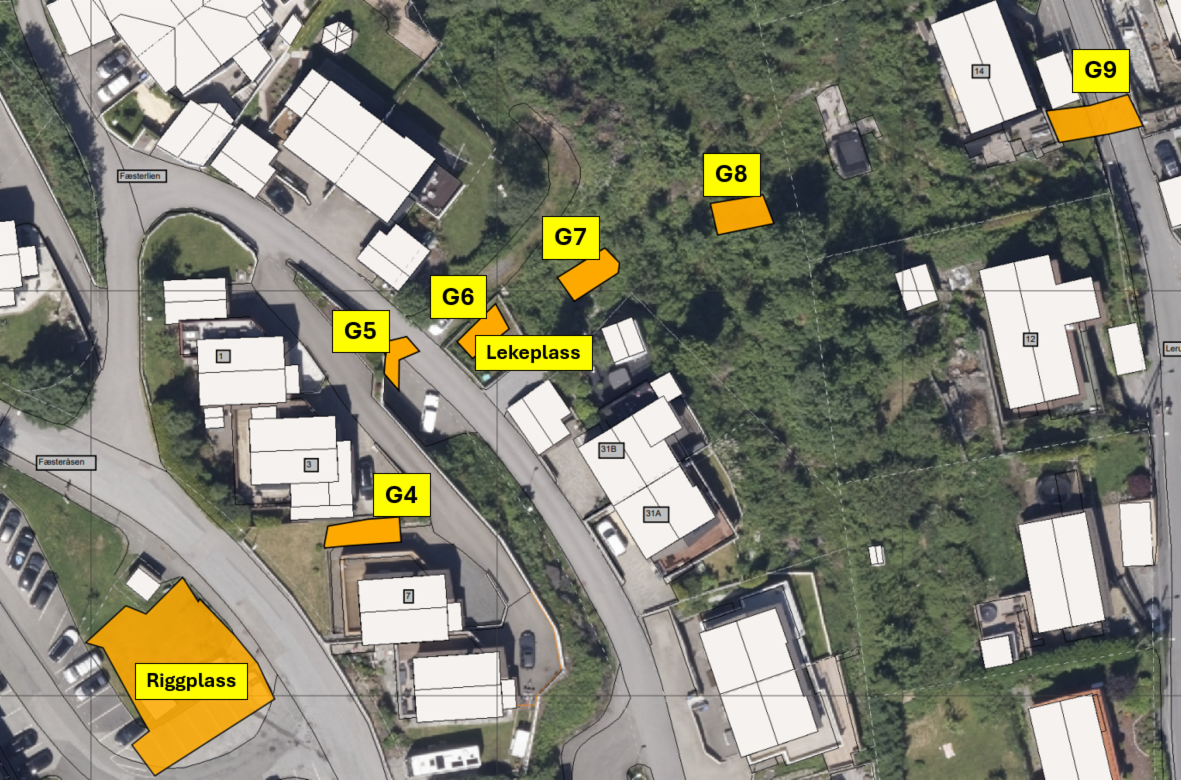 I tillegg til gravepunktene vil det bli etablert en riggplass ved Fæsteråsen. Denne vil medføre at det blir noen færre parkeringsplasser i anleggstiden. Beklager eventuelle ulemper dette medfører.