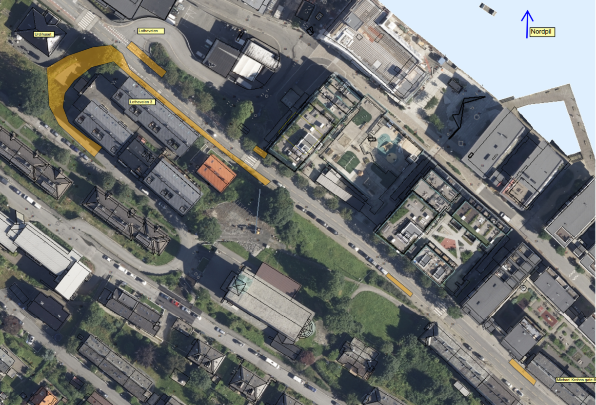 Uke 50 og fremover til nyttår - Arbeidene flyttes mot området rundt Lotheveien 3 og Urdihuset.