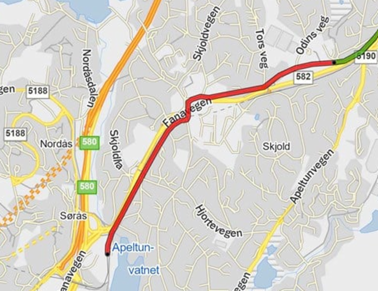 - Vi ber gående og syklende ta i bruk alternativ rute på vestsiden av Fanavegen. Alternativ gang- og sykkelvei er skiltet.