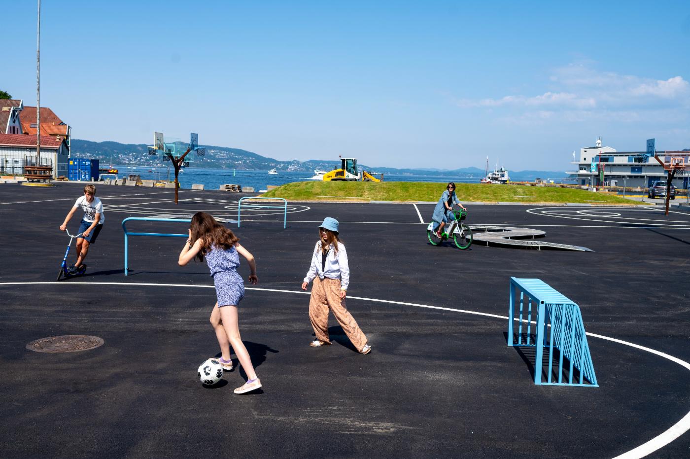 Viktige siktlinjer fra Tollboden og byfjorden er ivaretatt i et åpent og fleksibelt rom. Her er det gitt plass til arealkrevende aktiviteter som gatesport og sykkellek, og til større arrangementer.