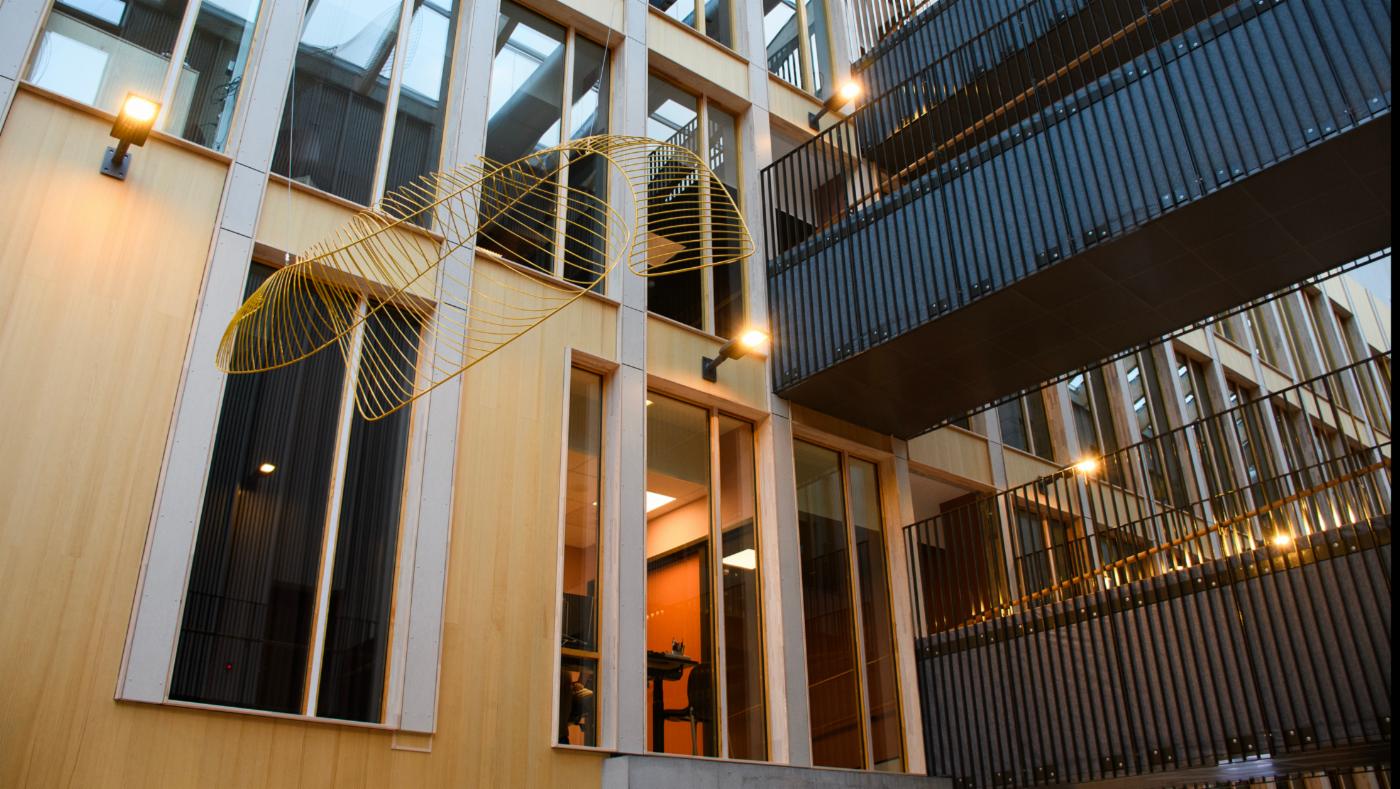 Den skulpturelle installasjonen, som henger i inkluderingssenterets atrium, materialiserer disse øyeblikkene av synkronitet - av å bli sett, av å arbeide sammen, av å belyse hverandres tilstedeværelse. Kunstverket er en poetisk meditasjon over lys, tid og tilhørighet, og minner oss om at samhørighet ikke bare er romlig, men dypt sammenvevd med rytmen i livene våre.