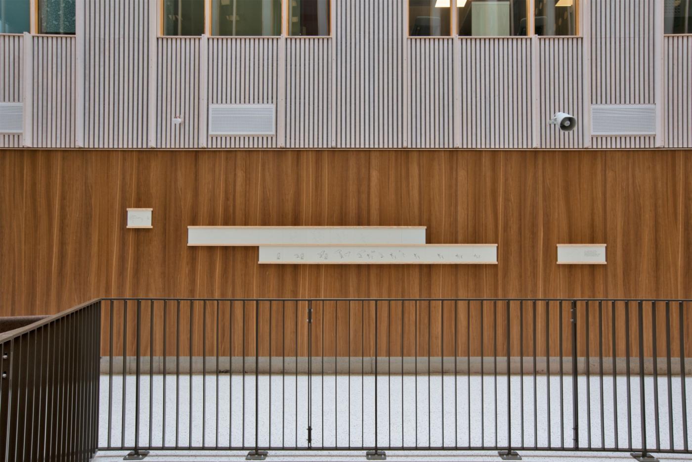 Landåsvingen 15 ble opprinnelig bygget til å være lærerhøyskole, og i 1995 laget den Bergensbaserte kunstneren Turid Uldal en serie stedsspesifikke skulpturer og vegginstallasjoner på ulike plasser rundt i det opprinnelige bygget. Til tross for en omfattende ombygging ønsket Bergen Inkluderingssenter å ta vare på noe av den opprinnelige kunsten, og en del av vegginstallasjonen er nå montert ved trappereposet mot gymsalene.