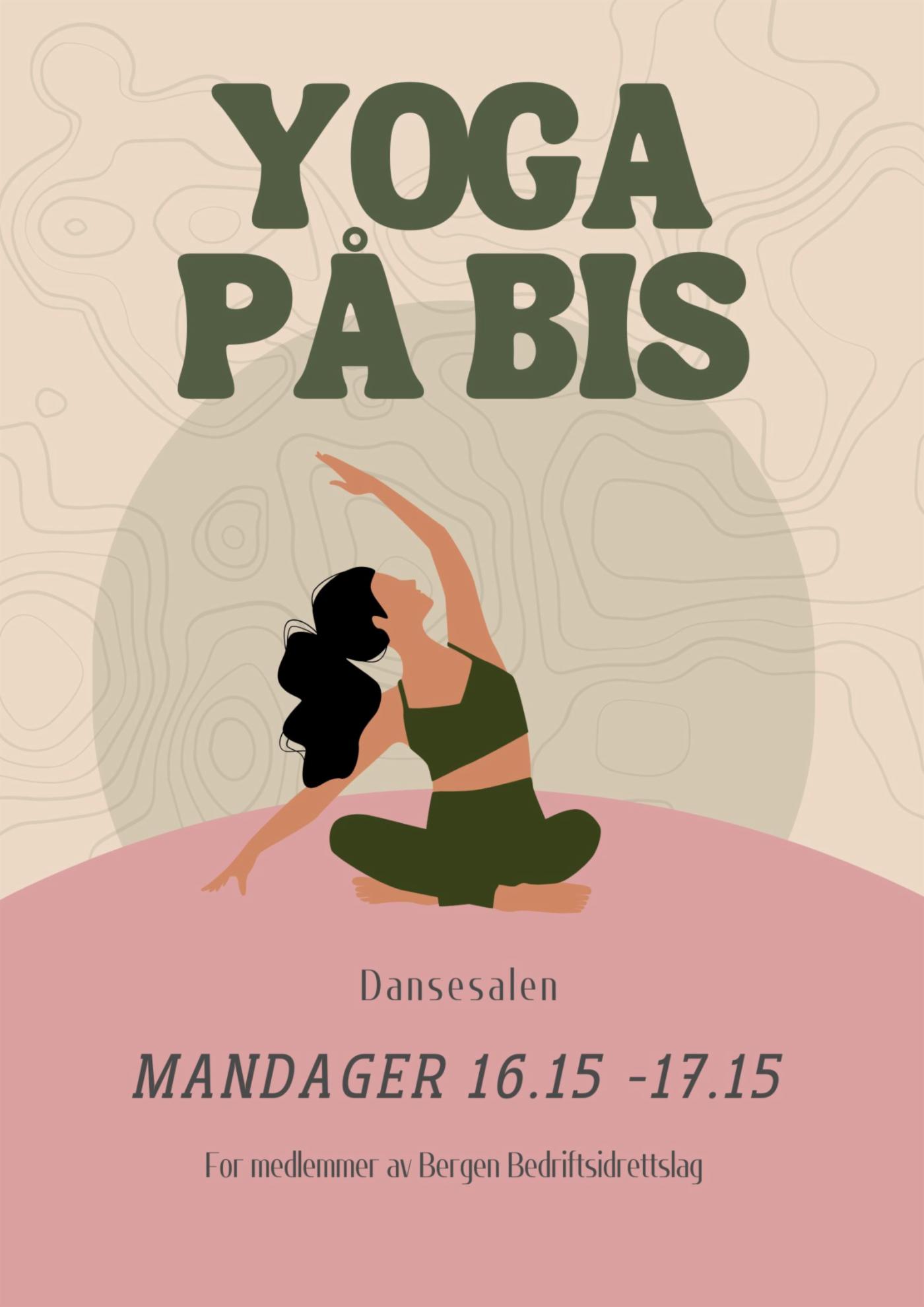 Timene er åpne og gratis for alle som er medlem i Bergen kommune bedriftsidrettslag. Påmelding er ikke nødvendig og det er lov å komme på prøvetime uten medlemskap. Timene blir ledet av instruktør Ingvild Sætre (Hatha yoga) og foregår i gymsalen, garderobe med låsbare skap og dusj er tilgjengelig. Yogaen passer for alle, uansett erfaring. Ta gjerne med egen yogamatte.