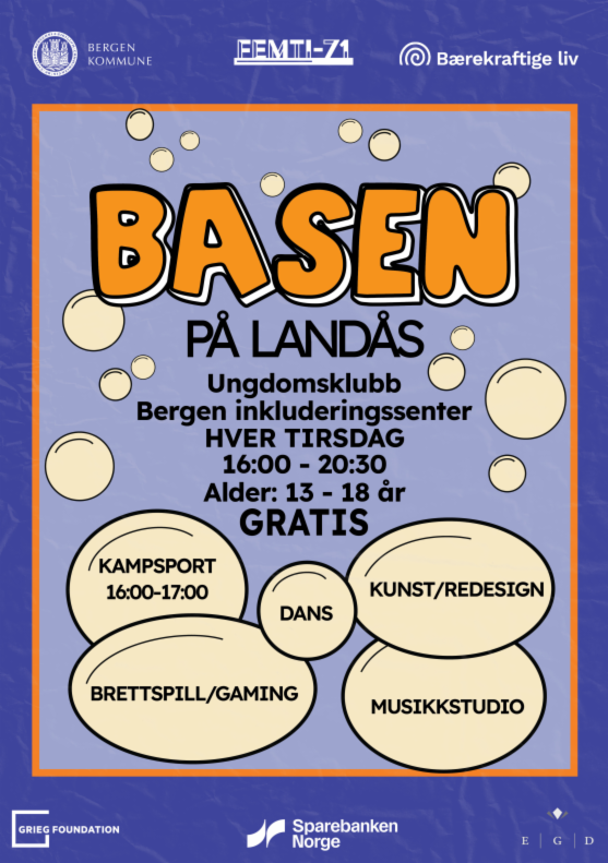 Femti-71 og Bærekraftige liv Landås arrangerer ungdomsklubben BASEN i Folkoteket hver tirsdag. Her blir det aktiviteter som brettspill, gaming og redesign. Det er også mulig å prøve seg i musikkstudio, på kampsport eller dansetime. BASEN har fokus på mestring og personlig utvikling, og på å skape et sunt og oppbyggende miljø hvor ungdommene blir sett, med gode, trygge rollemodeller. Oppmøte er alltid i Folkoteket. Tilbudet er gratis og åpent for alle i alderen 13-18 år.