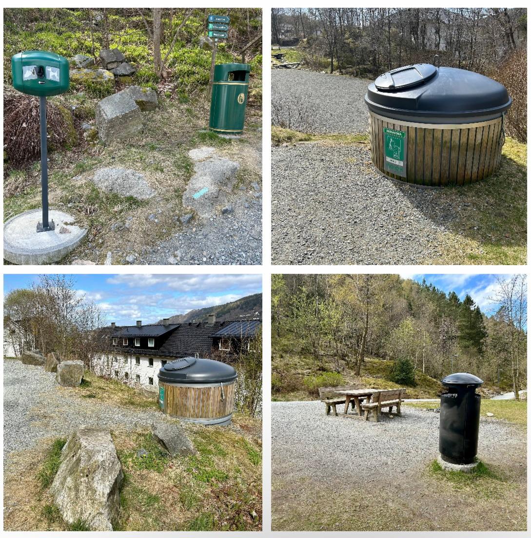 Slik ser noen av avfallsbeholderne ut langs Løvstien.