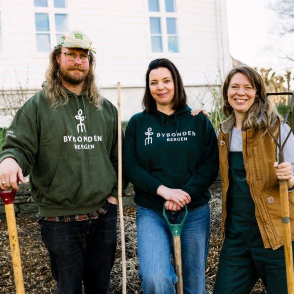 Bybøndene i Bergen. Fra vestre: Rob Weir, Kristin Hermansen og Katinka Kilian.