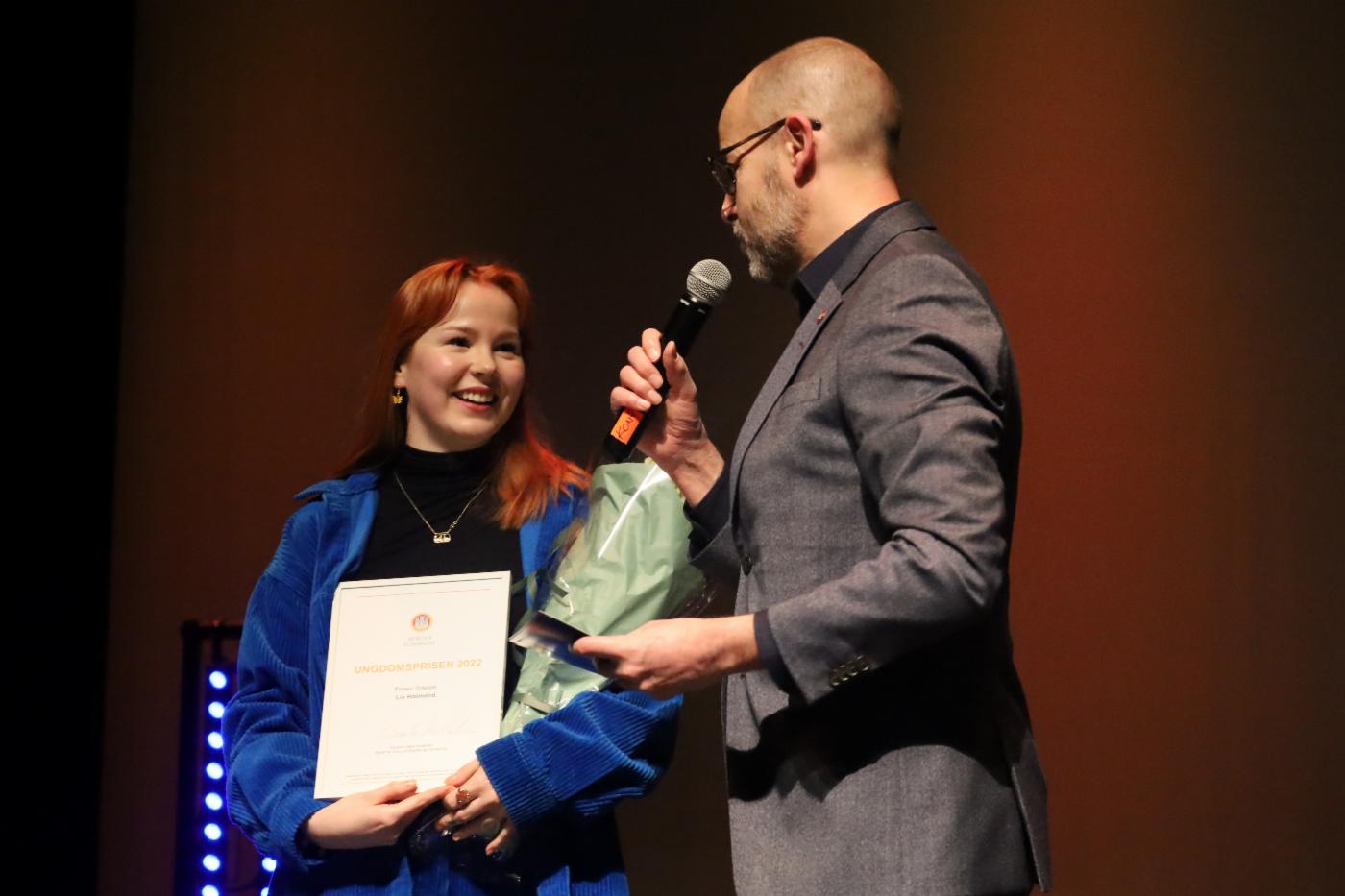 Byråd Reidar Digranes deler ut Ungdomsprisen for 2024 til Andreas Ilsen (17).