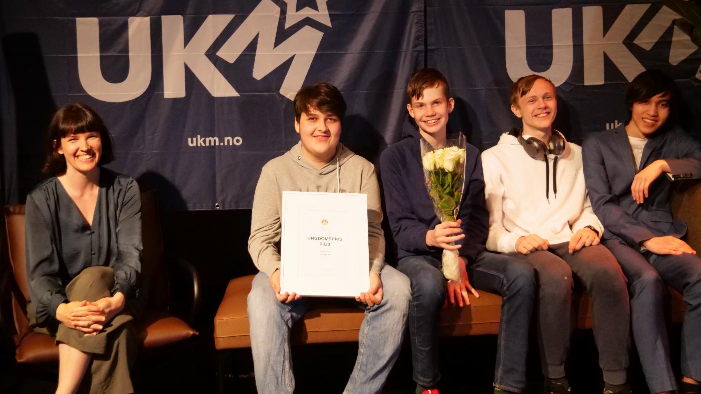 Byråd Katrine Nødtvedt delte ut Ungdomsprisen for 2020 til gruppen Knutepunkt under UKM 15. mai.