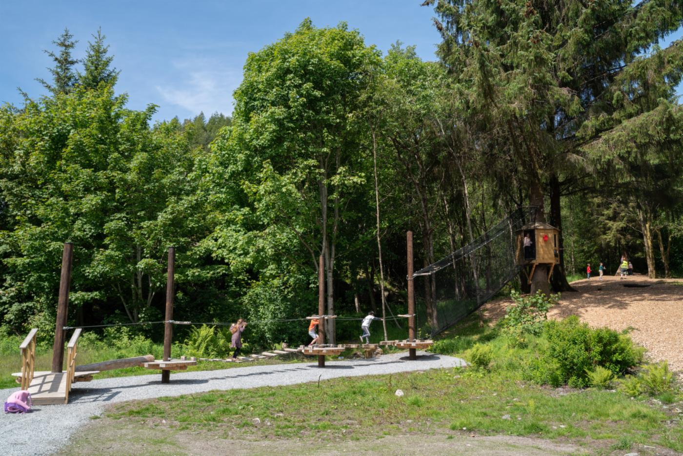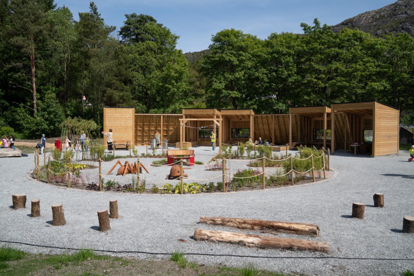 Anlegget er bygget med hensyn til miljøet. Det er brukt naturlige materialer som bark i stedet for fallunderlag av plast, og vegetasjonen er bevart så langt det har vært mulig. Det er ikke gjort større inngrep i naturen, og arbeidene er gjennomført med elektriske maskiner. En egen «delebod» er også satt opp, der lokale barnehager, skole og SFO kan oppbevare og dele på hverandres utstyr til lek og aktivitet.