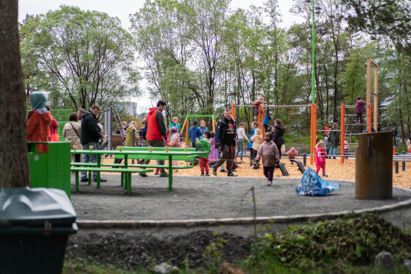 Sandgotna lekeplass i Loddefjord inneholder blant annet ballbaner, klatrestativ og lekeapparater. Her skal det være noe for alle.