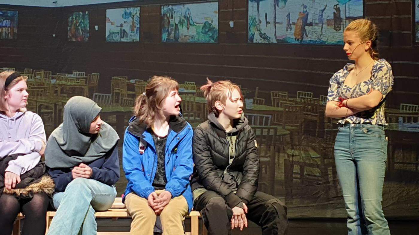 Vi jobber blant annet med teksttolking, tekstfremføring, personlig instruksjon og regi. Det er en forutsetning at elevene jobber med stoffet hjemme.