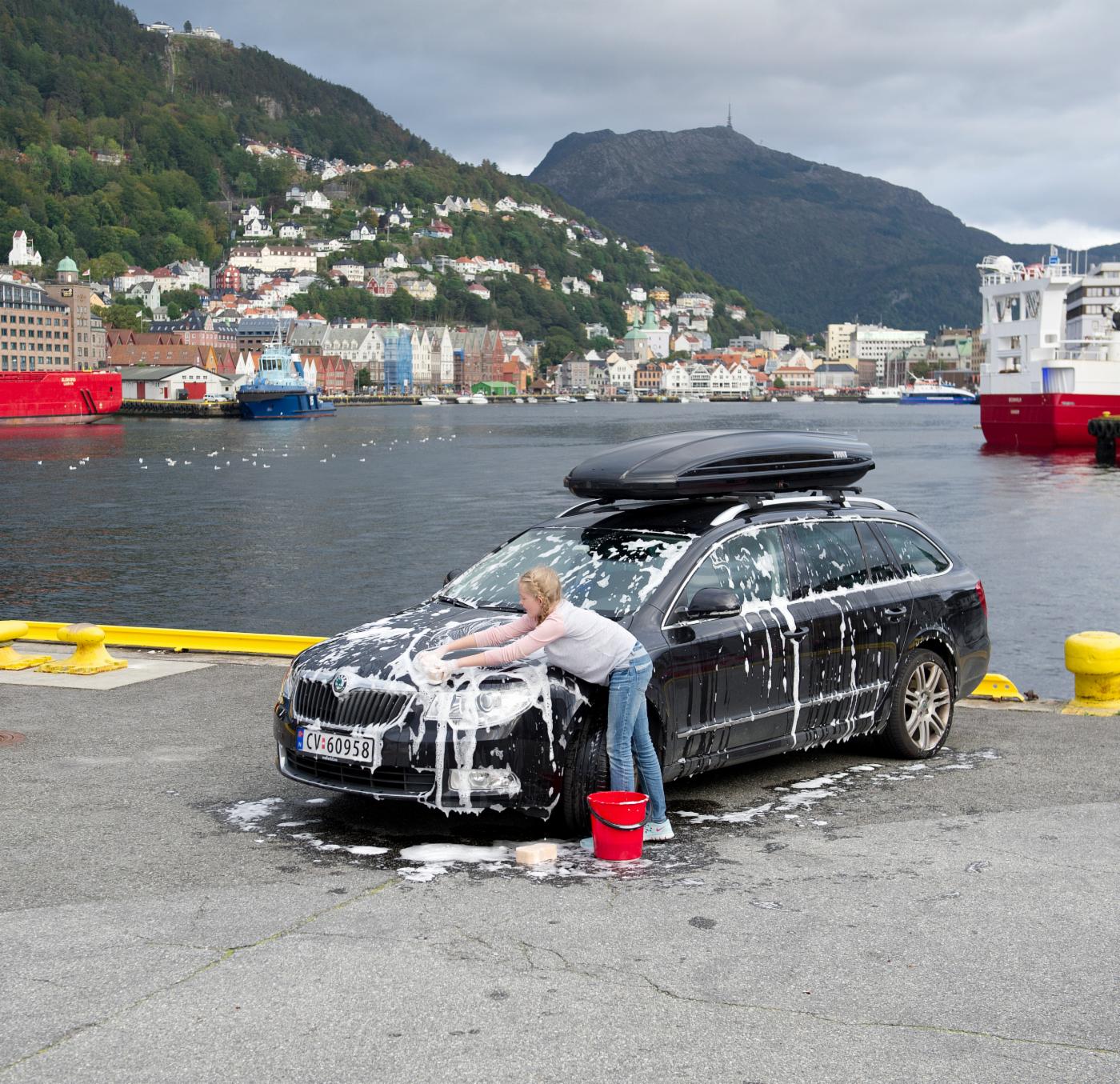 Bergen Vann anbefaler å vaske bilen i vaskehall.