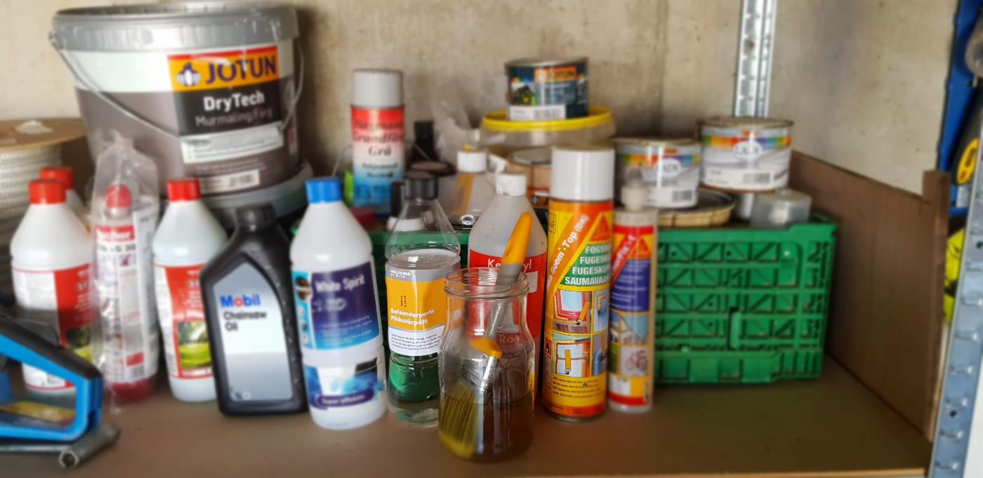 Lever større mengder malingrester og malingsspann til miljøparker for farlig avfall.