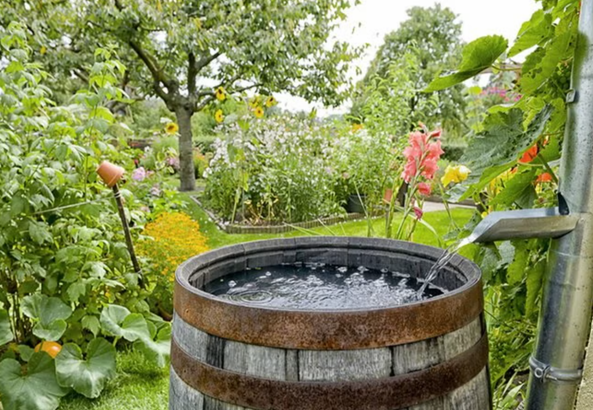 Det oppsamlede regnvannet kan brukes til å vanne i hagen. Vannet blir da gratis – og dessuten liker plantene kalkfattig regnvann bedre enn vann fra springen.