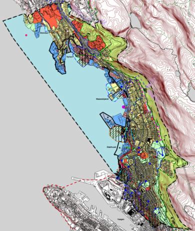 - Viser grøntdrag og gir retningslinjer for hvordan disse skal sikres. Endelig grense mot byfjellene er trukket.