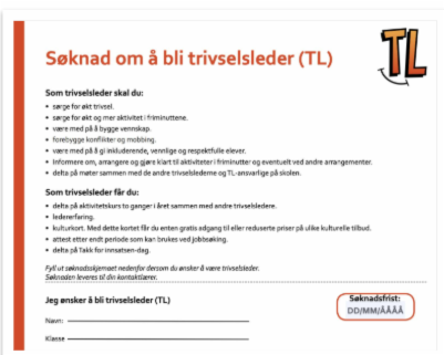 Alle som er inkluderende, vennlige og respektfulle mot alle andre kan bli TL. På Alvøen skole har vi trivselsledere fra 3.-7.trinn. Hvert halvår vil kontaktlærerne informere elevene om programmet, bl. a. hva som er målet med programmet, hva det betyr å være TL - og hva som er forventningene til til en trivselsleder. Trivselsleder i klassen velges gjennom anonym nominasjon eller søknad.