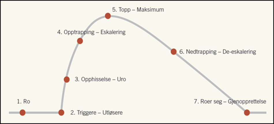 Trygghetsplanen er bygget opp rundt fasemodell for eskalering, og inneholder tiltak i fasene forebygging, håndtering og oppfølging i etterkant av uønskede hendelser (Arnesen et al., 2017).