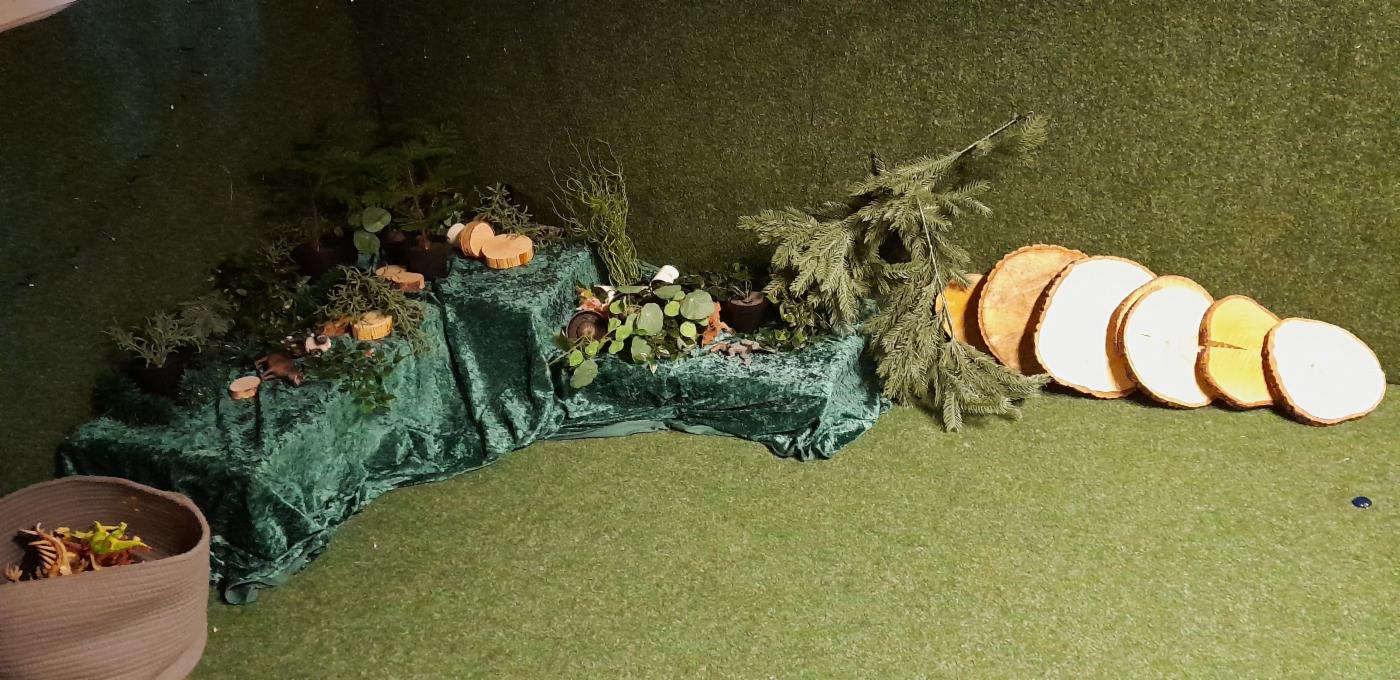 Uteområdet vårt bærer preg av at vi ligger midt i skogen. Naturtomt med mange trær, bålplass og vår egen lille skog innen for gjerdet. En stor akebakke når snøen er her og fine sykkelveier har vi når været tillater det.