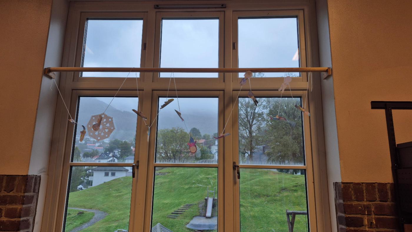 Pyntet vinduene i 3.trinn med figurer av seg selv