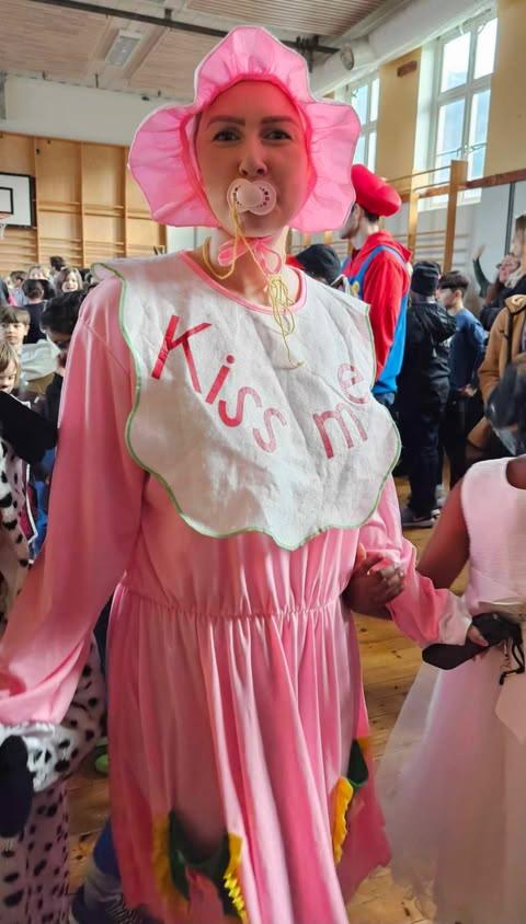 Lærer på 1. trinn utkledd til karneval på Fridalen skole
