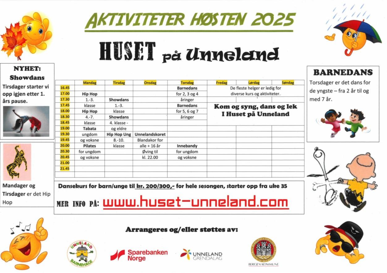 Her er oversikt over de ulike tilbudene som finnes på Huset på Unneland i høst.