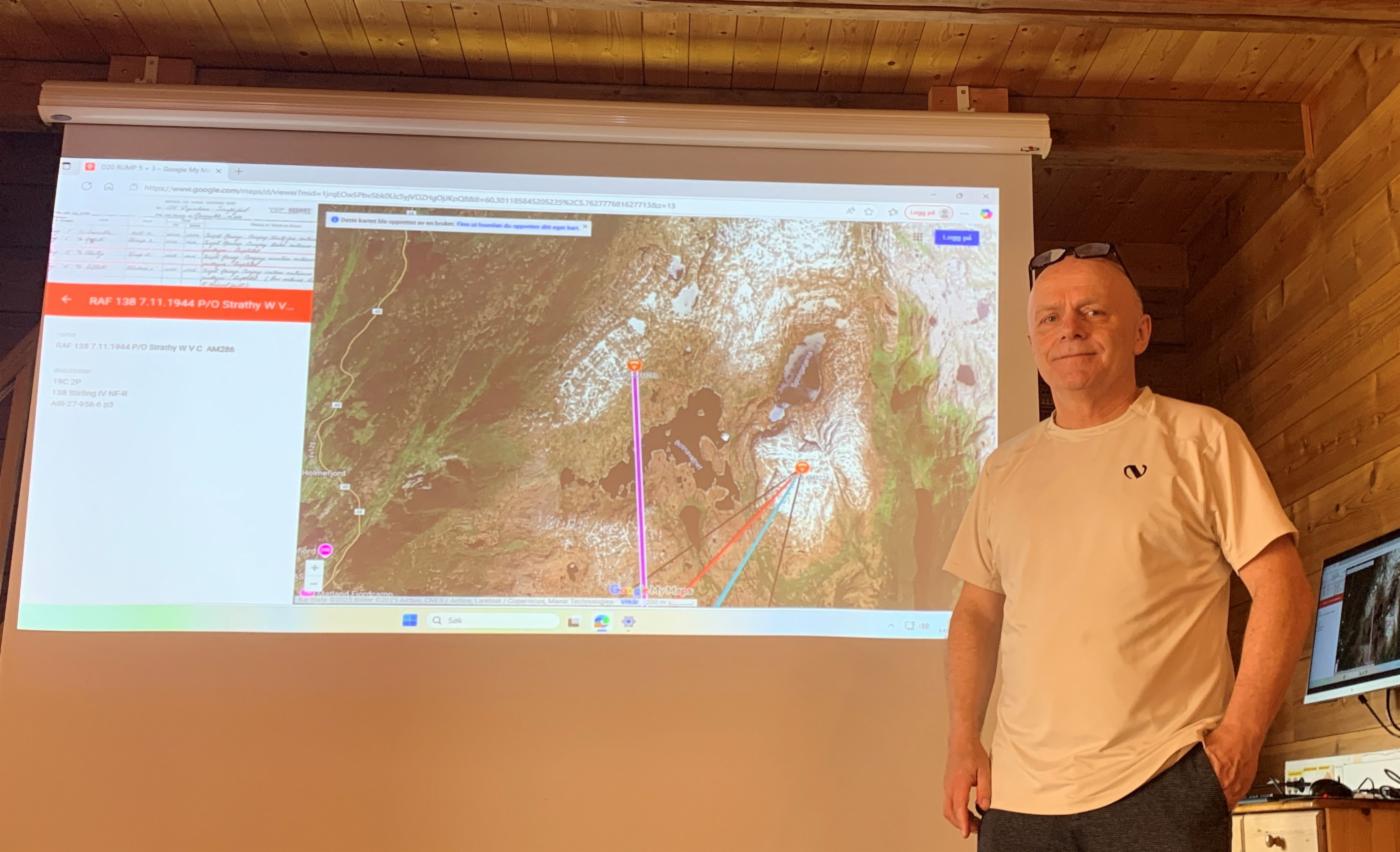 Dagen startet med et foredrag på leirskolen der nye bilder og ikke minst flyrutene flyene tok til hvert av sleppene ble presentert. Spesielt spennende var det at vi nå vet rutene flyene tok fra England til Hålansdalen for hvert av sleppene!