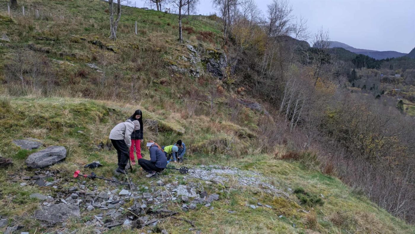Hellen hadde sin tysdag til Kikedalen med undervisningstema frå middelalderen og om korleis landskapet har blitt forma gjennom 3-4 millionar år. Koplinga til leirbål her inne er gjennom to fellesbål elevane kan samlast rundt i lunsjpausen.