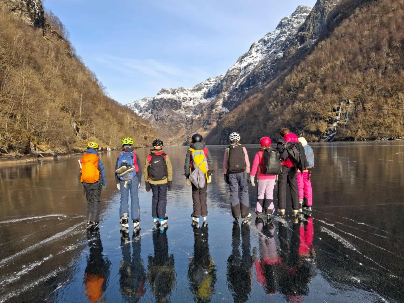 Dette er noko av det som elevane har fått høyre om på deira ferd innover isen på Gjønavatnet. Det er lenge mellom kvar gong dette er mogleg å gjere – så då sjansen no baud seg, med trygg is og fantastiske skøyteforhold, ja då var det berre å rigge turdag på skøyter til Kikedalen.
