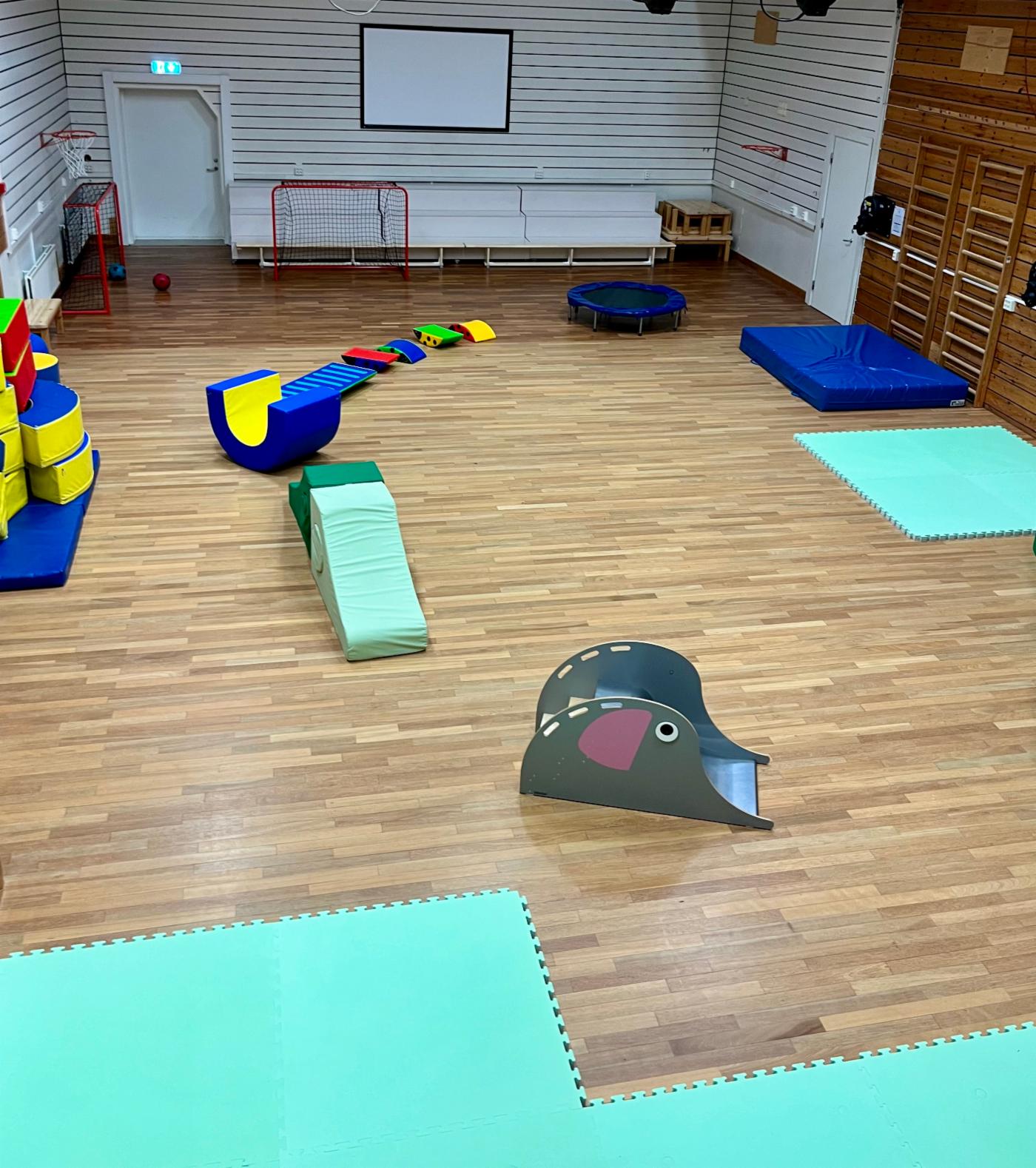 Det er et stort privilegium at vi har vår egen gymsal. Her kan store og små boltre seg og leke. Det er alt fra ballspill, hinderløype, klatrevegg, sanselek, skummoduler og mye annet tilgjengelig for barna. Det er så kjekt å se hvordan barna koser seg her. Det er jubel og glede når man vinner en fotballkamp, kommer seg til toppen av ribbeveggen eller leker med en god venn.