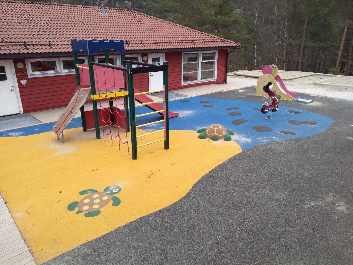 Lekeplassen er en stor naturlekeplass som ligger fint til i skogen. Her er det varierte lekeområder. VI har også egen bålplass. Lekeplassen gir barna gode forhold for å bruke kroppen sin i naturen, og til å ha fin lek ute.